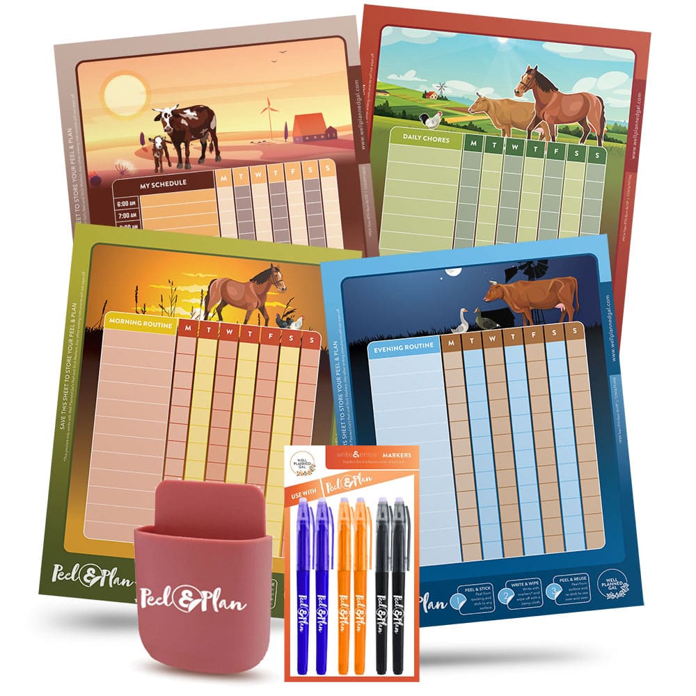 Peel & Plan Chore Charts give kids a clear, age-appropriate way to manage responsibilities — so your home runs smoothly and your kids grow in confidence, independence, and follow-through.